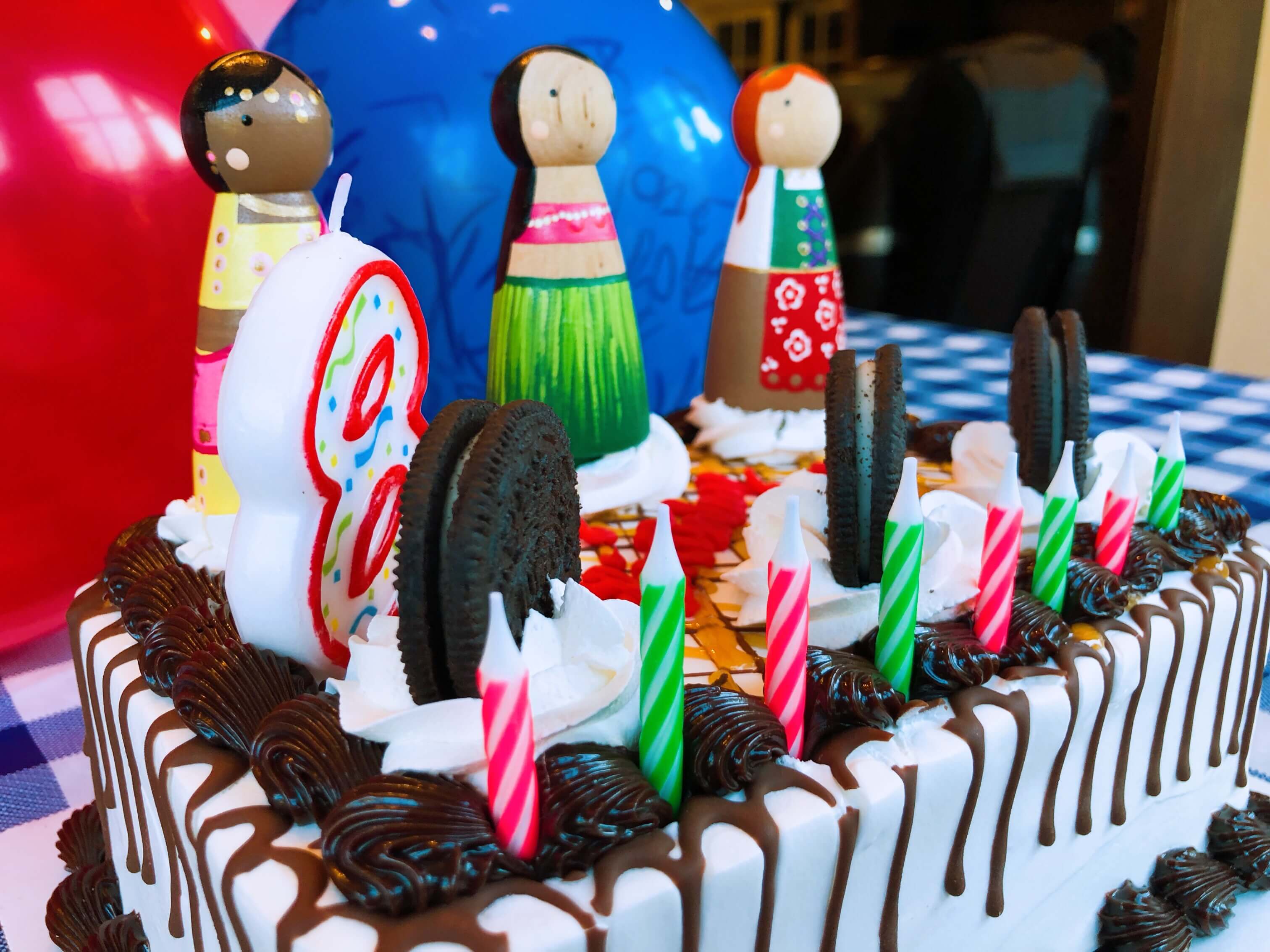 Aanika turned 8 this year! And it happened to fall on a Jewish holiday so the kids had no school! Mommy hung out with the babies in the morning and then I joined them in the afternoon. We went to the park where Jatin got stung by a bee, Aanika enjoyed the swings and slide and I felt like my 8 year old self by hanging upside down from the bars! We picked up a delicious ice cream cake from Baskin Robbins and decorated it with hand painted dolls I bought on Etsy for Aanikas collection. Neeru gifted Aanika the beautiful Snow White doll she wanted. Her Nani and Nana spoiled her gorgeous winter jackets, clothes, a princess Anna doll and lots of nail polishes and lip glosses! We cut cake and enjoyed pizza from Amecis in the evening. All in all a fun, easy going Birthday for our beautiful baby girl.