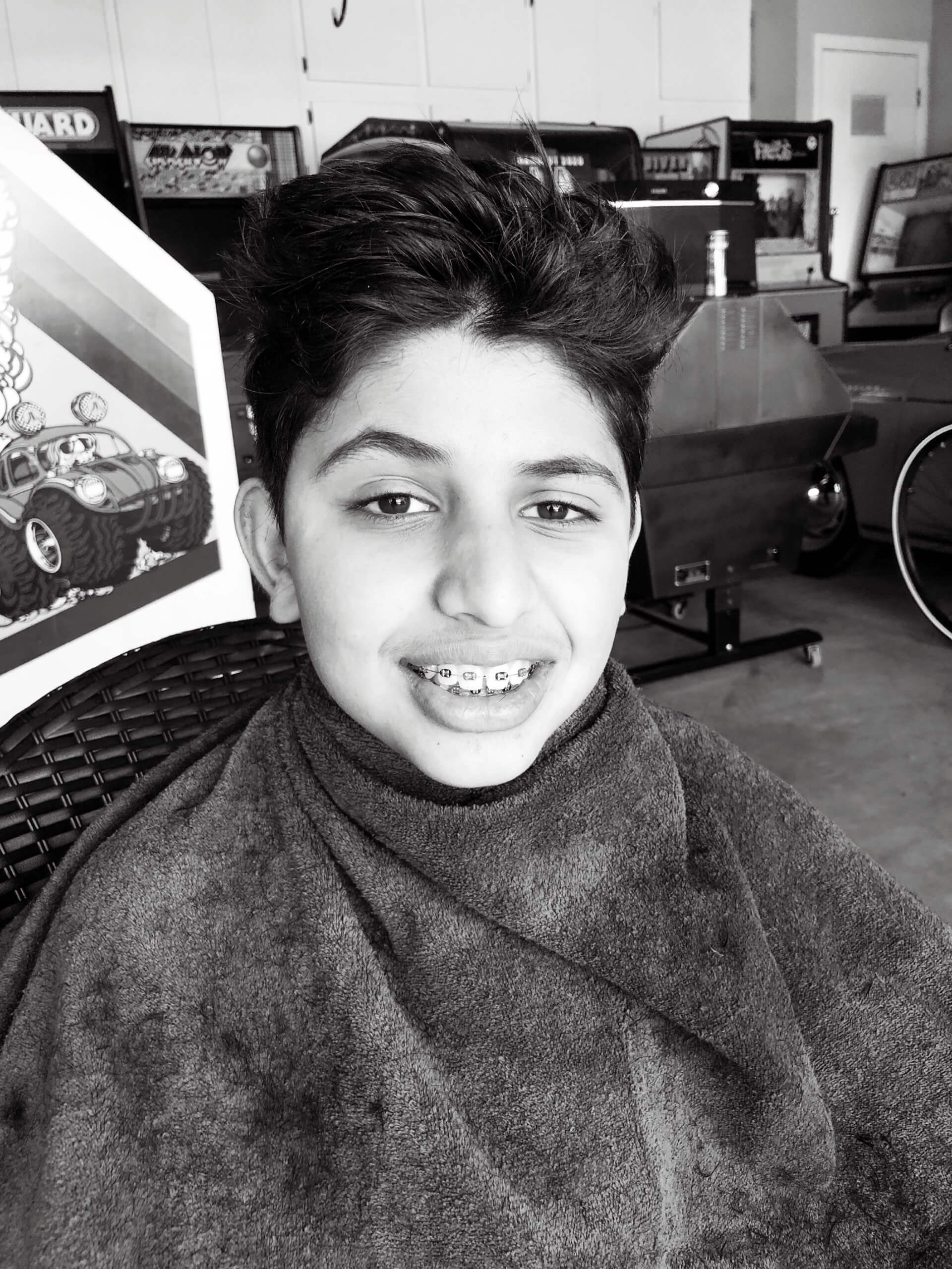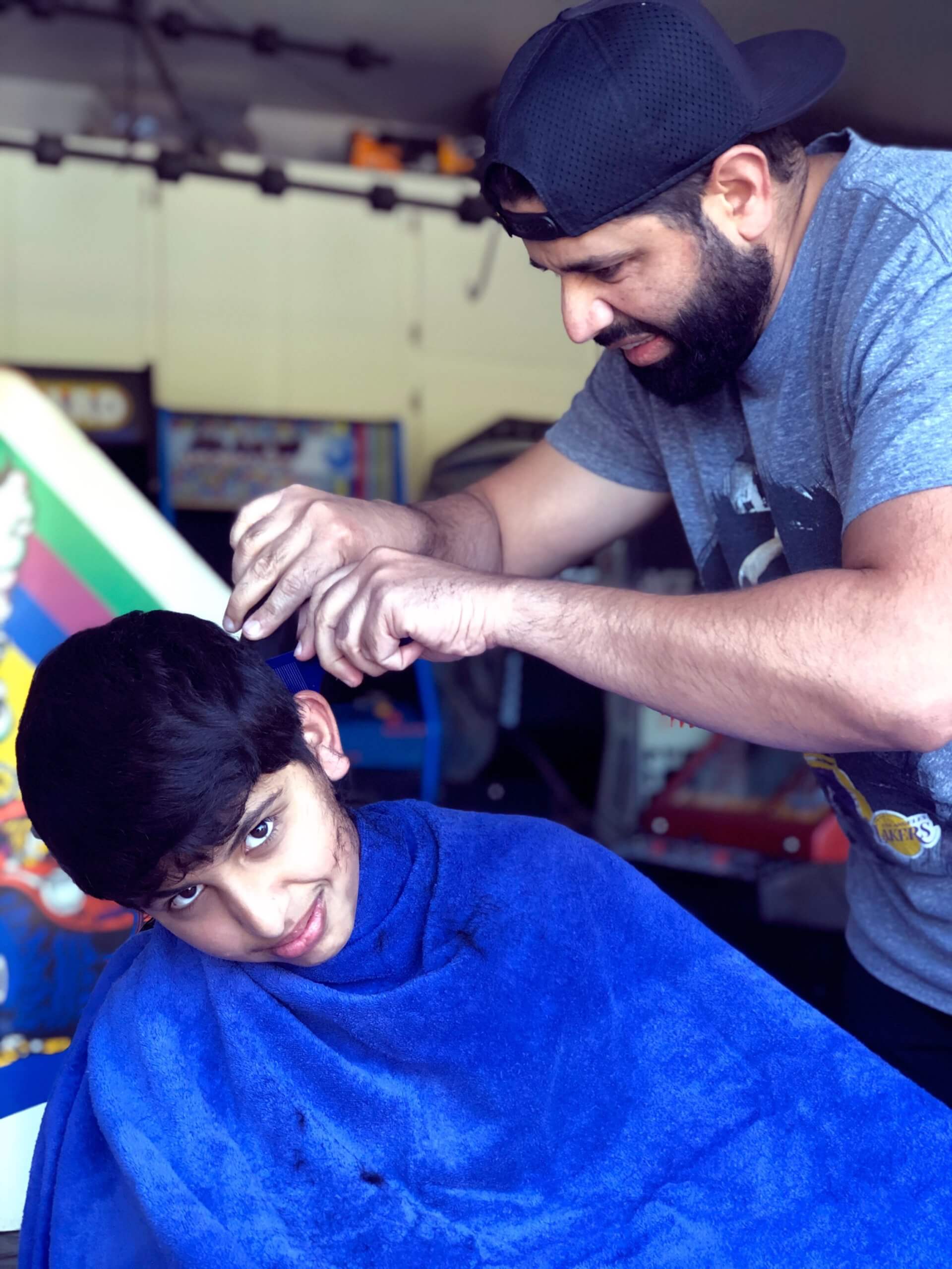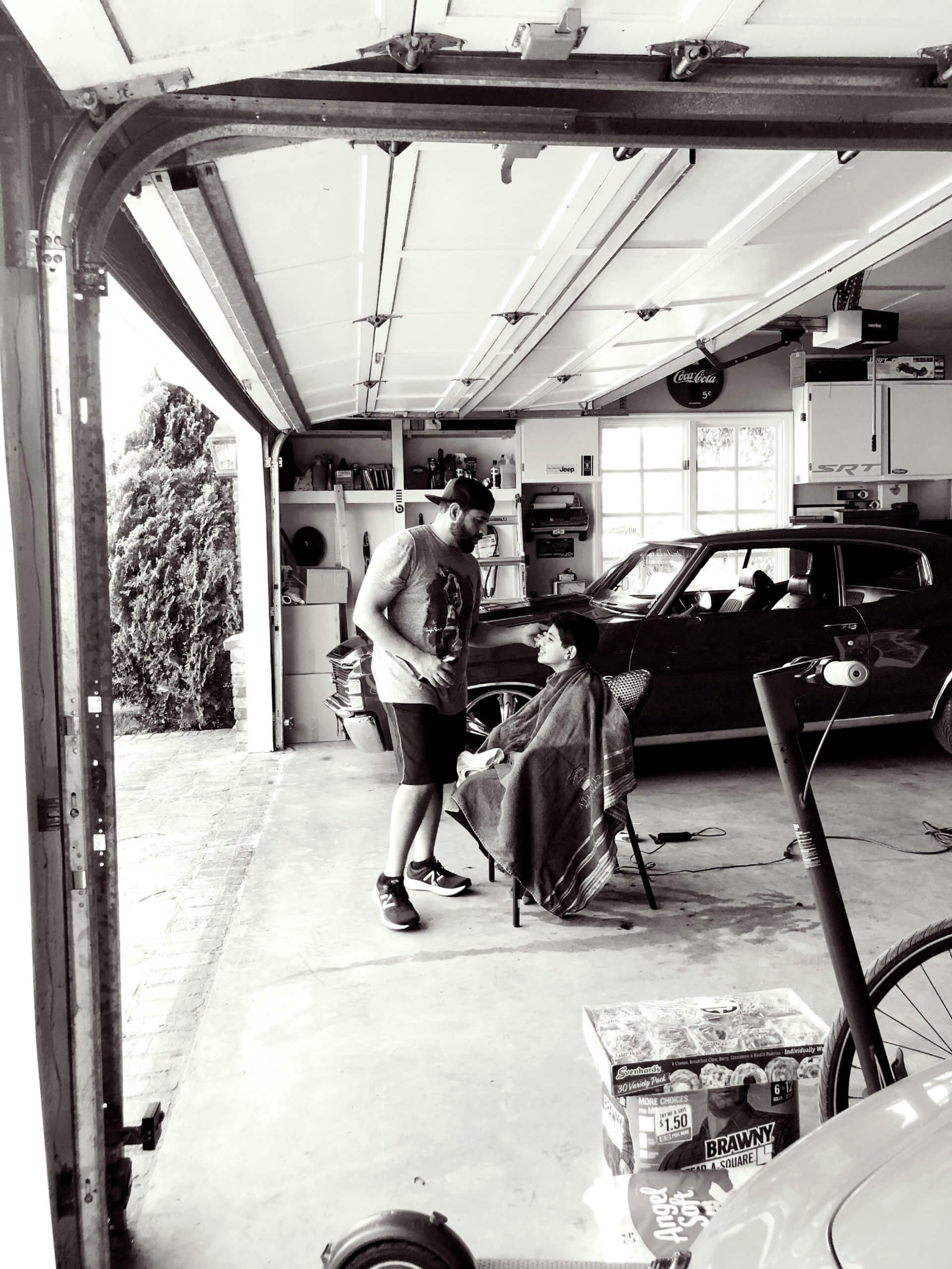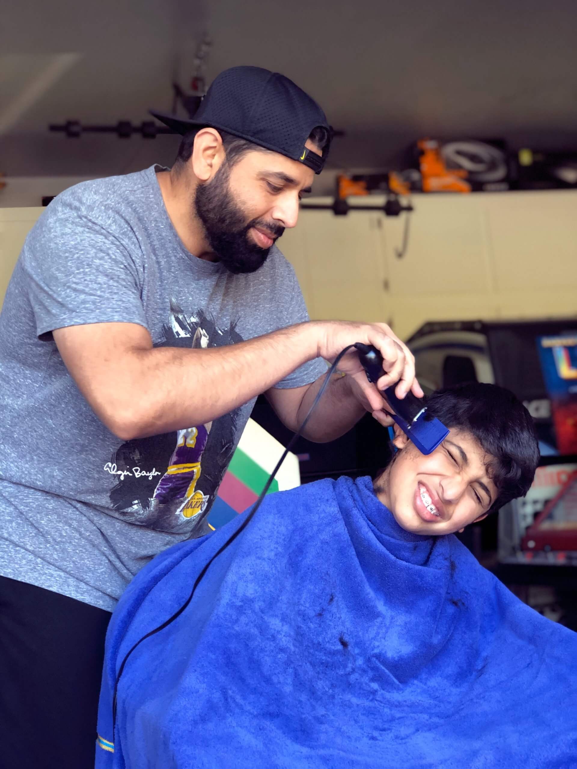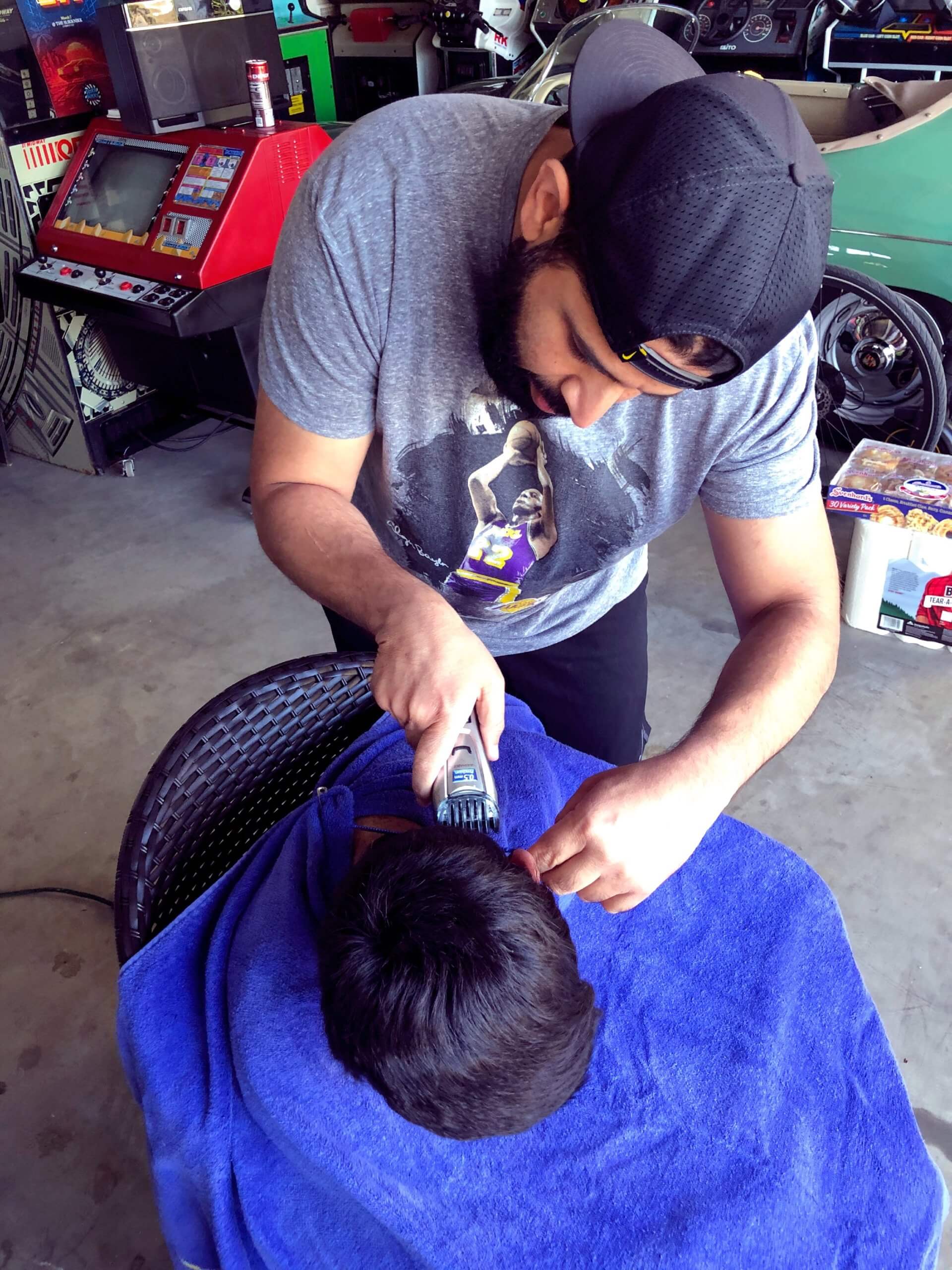 Nick was a champ and gave Jatin an awesome haircut in the garage!