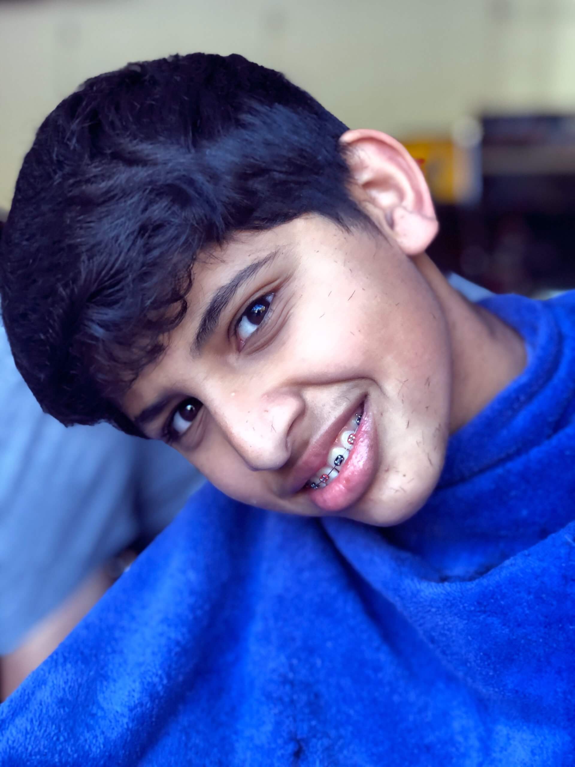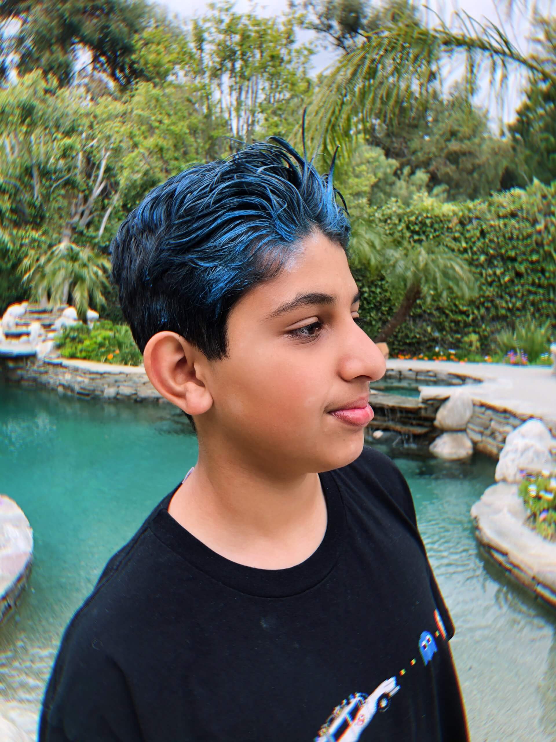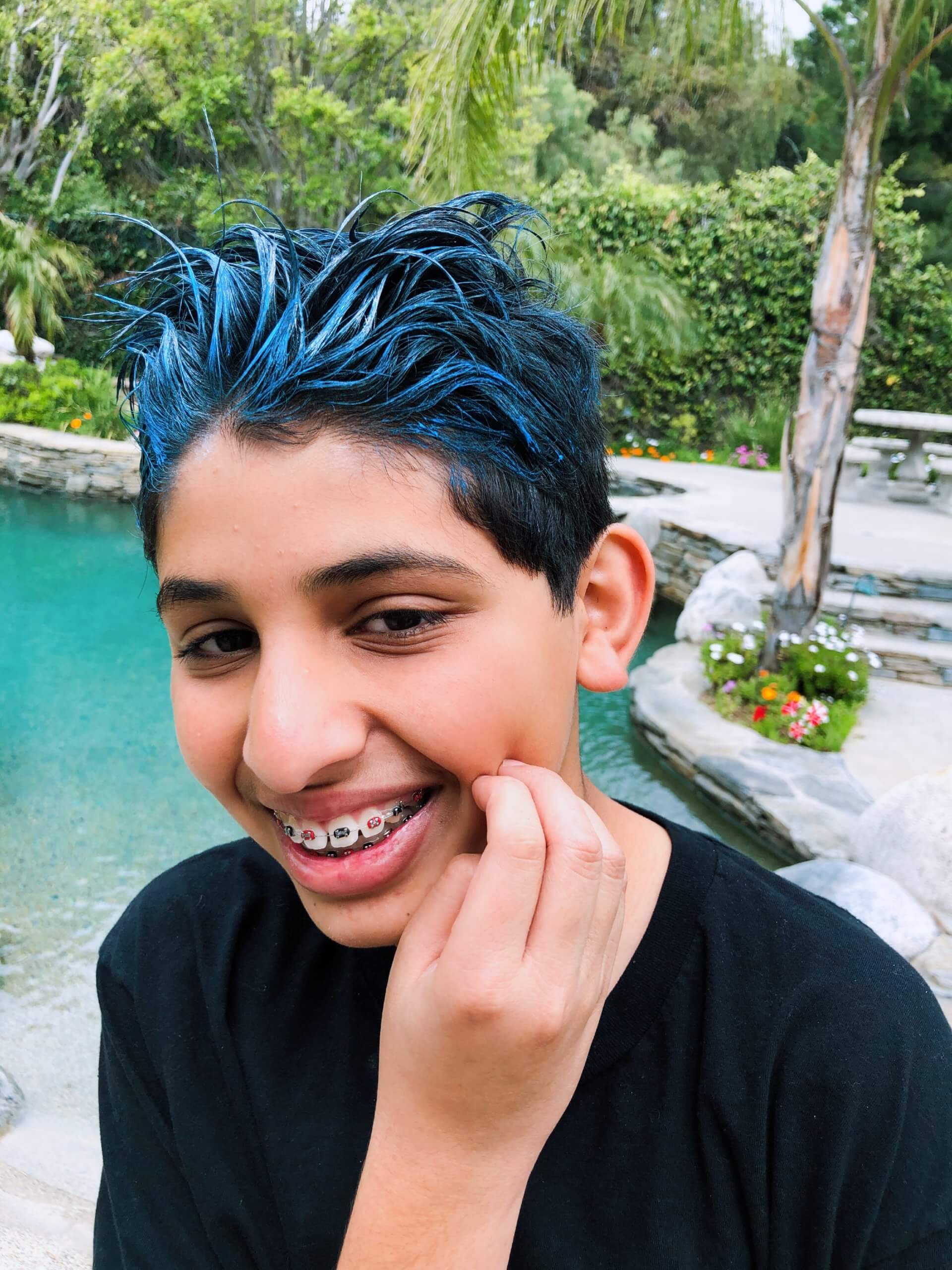 Jatin is a great sport and let me put blue gel in his hair. Ended up loving it!