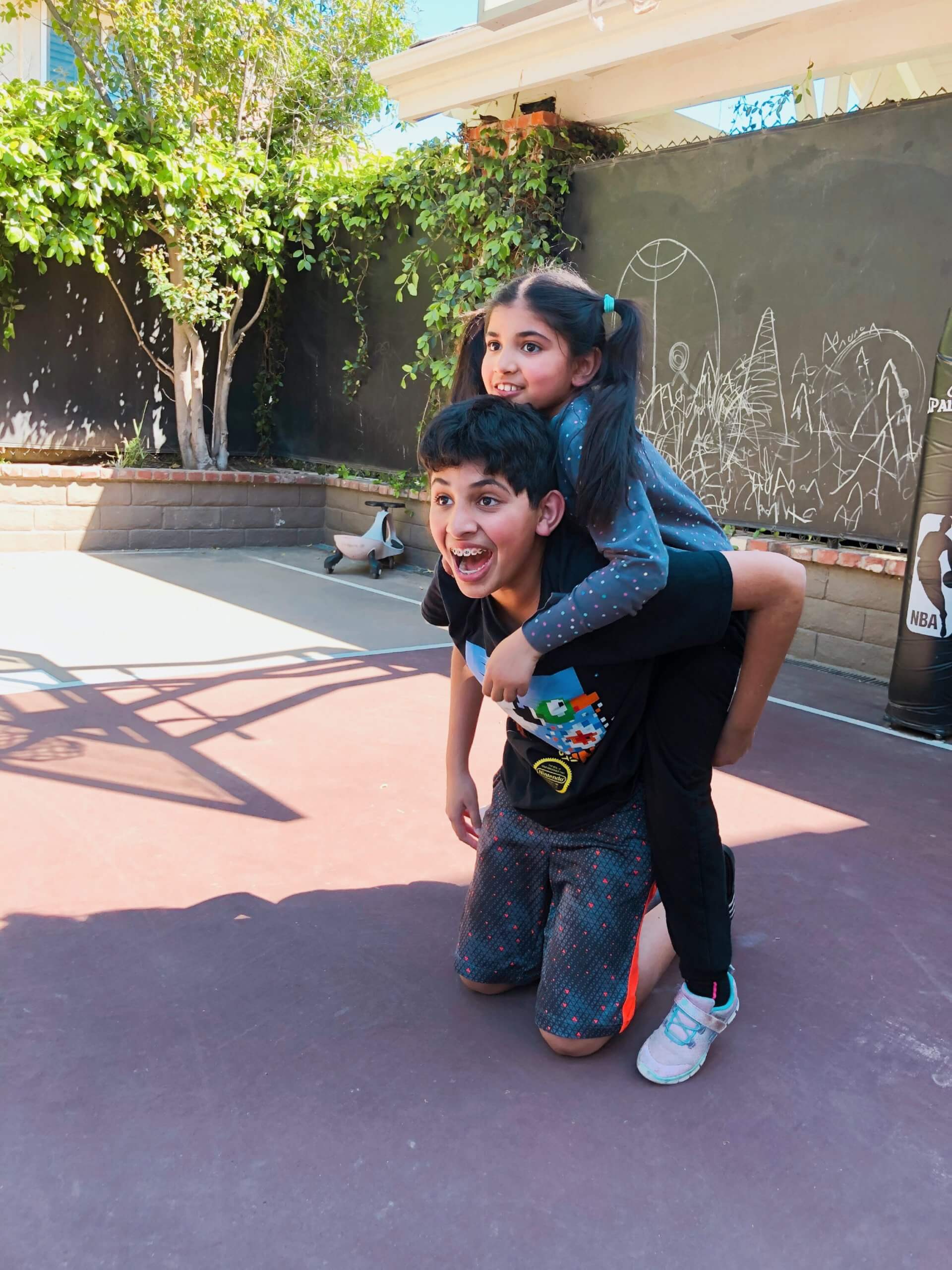 Aanika’s version of pe is to jump into her brothers back while doing push-ups.