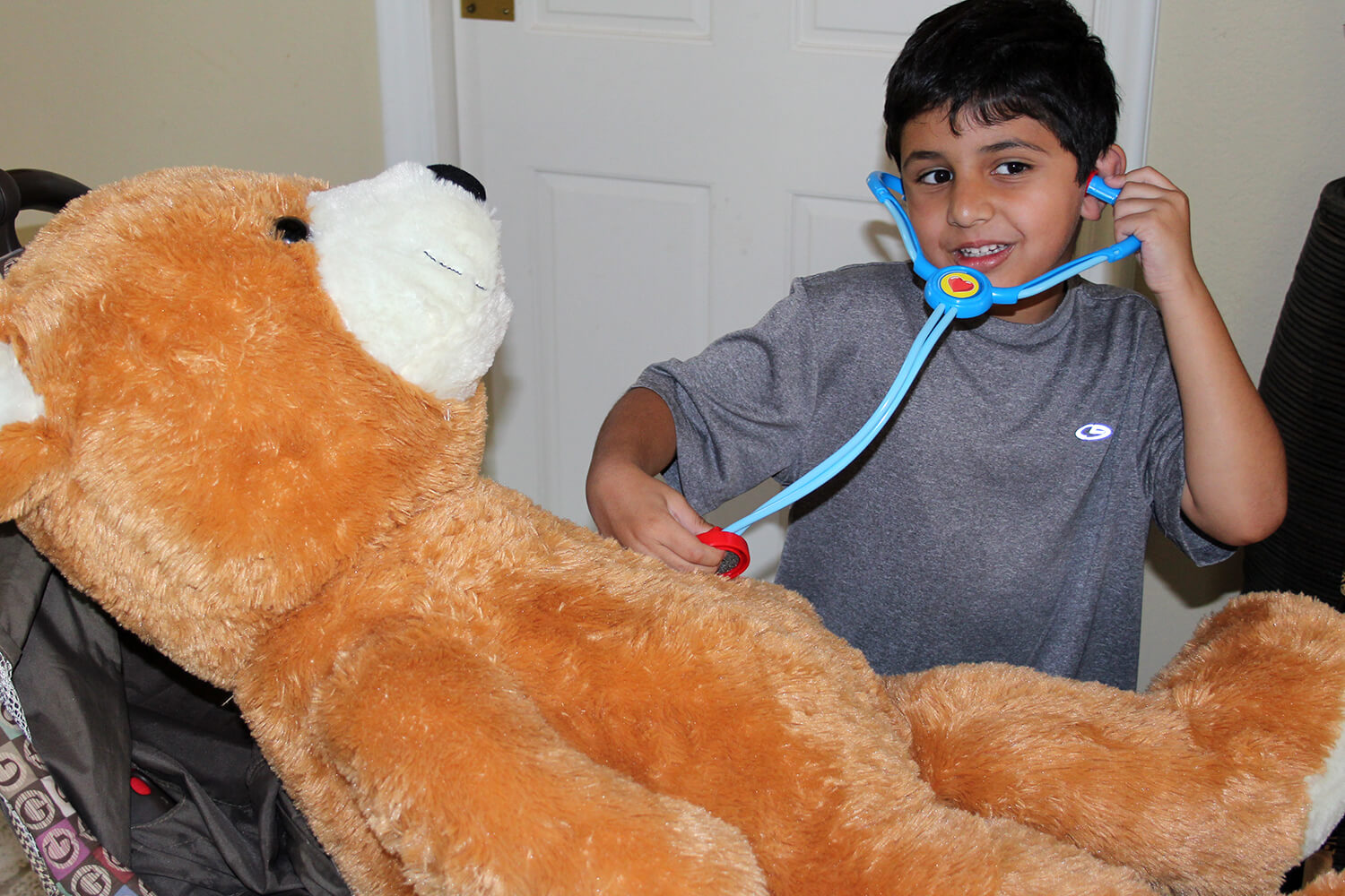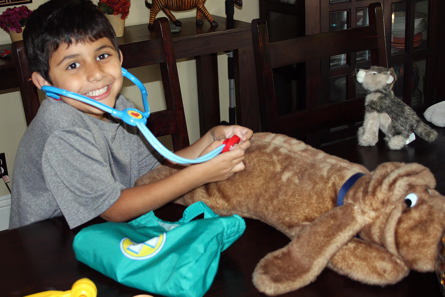 Just another day at the Gundara House! Aanika sweetie pie has been exploring the house, playing hide and seek and has started to enjoy “posing” with that naughty smile for the camera! Jatin discovered some “boo-boo’s” on our animals, so we quickly pulled our his “Dr. Jatin” kit and fixed them right up. You can see him in post op below. Great bedside manner!