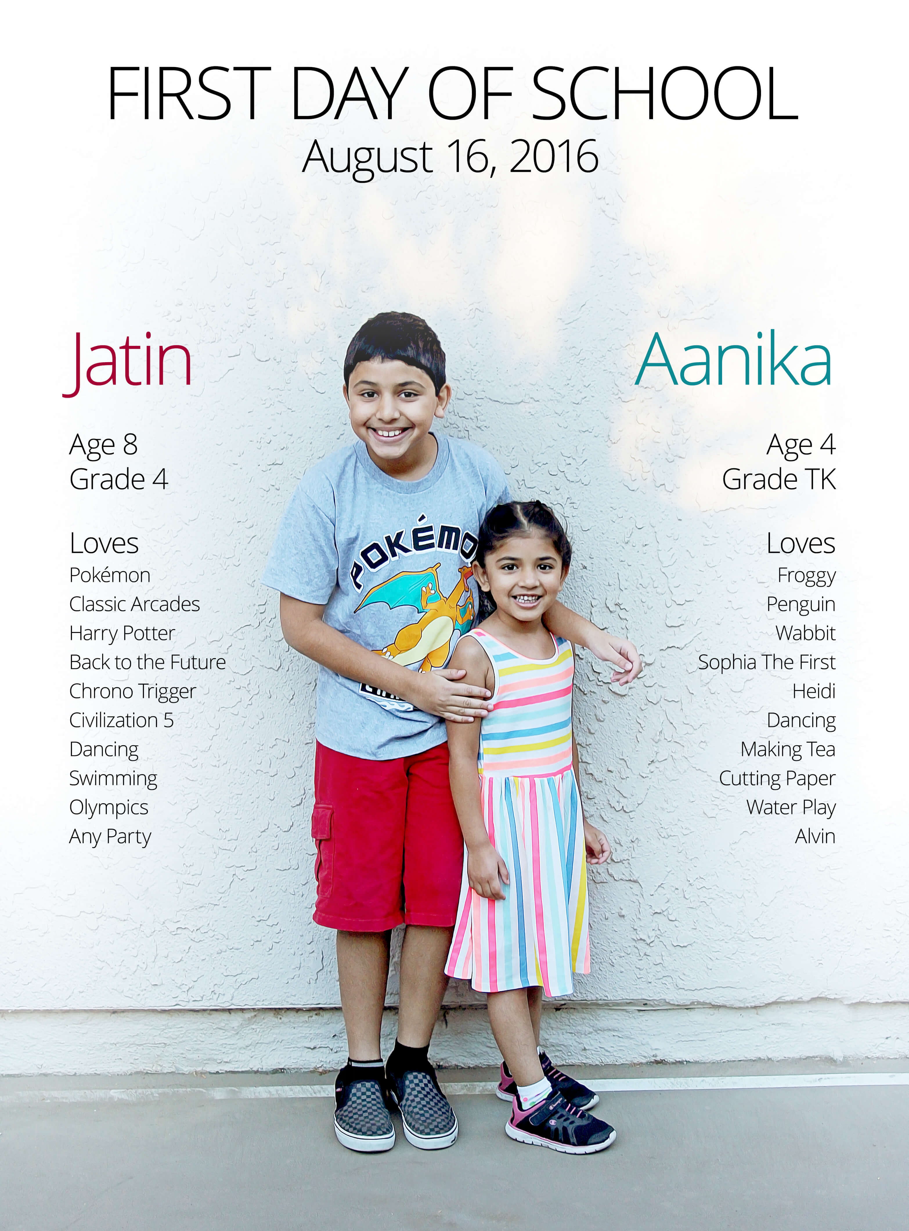 The kids are in the same school again this year which is awesome! Jatin entered 4th grade (officially now an upperclassmen) and Aanika is in TK. The best part is they are right next to each other on campus and Jatin got his same teacher, class and friends as last year!