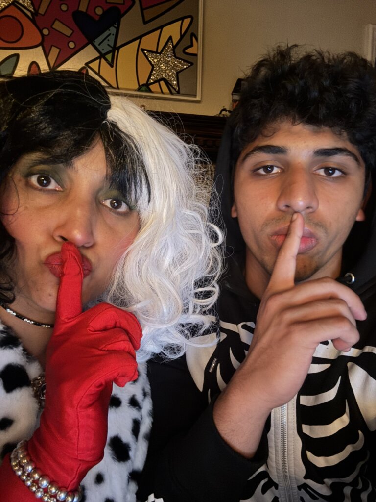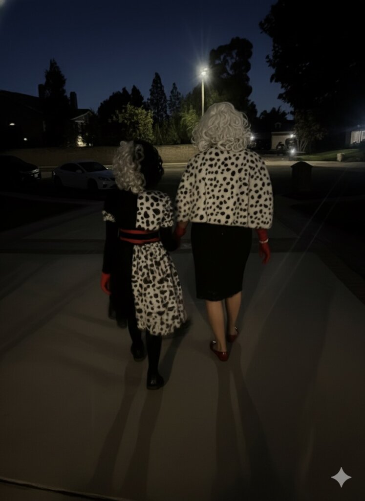 Halloween 2025 was all about puppies in our house. Since Aanika loves her villains and dressed as Ursula last year, Cruella De Vil felt like the perfect choice, and she fully committed by keeping her wig on all day at school and through trick-or-treating. A few weeks before Halloween, I was invited to Maria’s annual costume party and decided to match her, which made Aanika so excited when she saw her mama transform into Cruella before she even got to wear her own costume. I also made it to the annual Zumba Dance Halloween Hangout as a kitty cat, and Jatin came home for the weekend to hand out candy — making it a fun, festive Halloween all around. Anyone say puppies?
